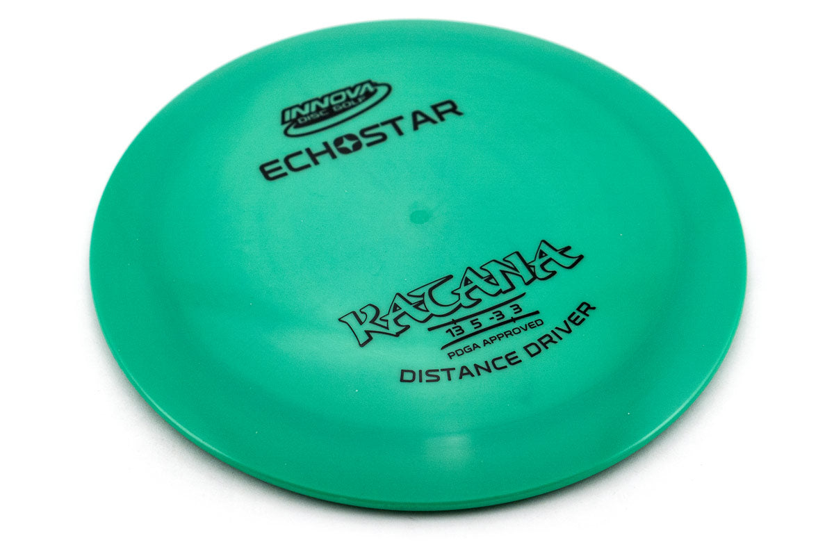 The Katana is built with the finesse thrower in mind. Recommended downwind driver. Hit the angle right and watch it bolt out of sight. The physical characteristics resemble a Boss with the flight characteristics of a Sidewinder on steroids. Master the technique of Katana and rule the course. Champion Katanas have slightly different flight characteristics at [13|5|-2|3].