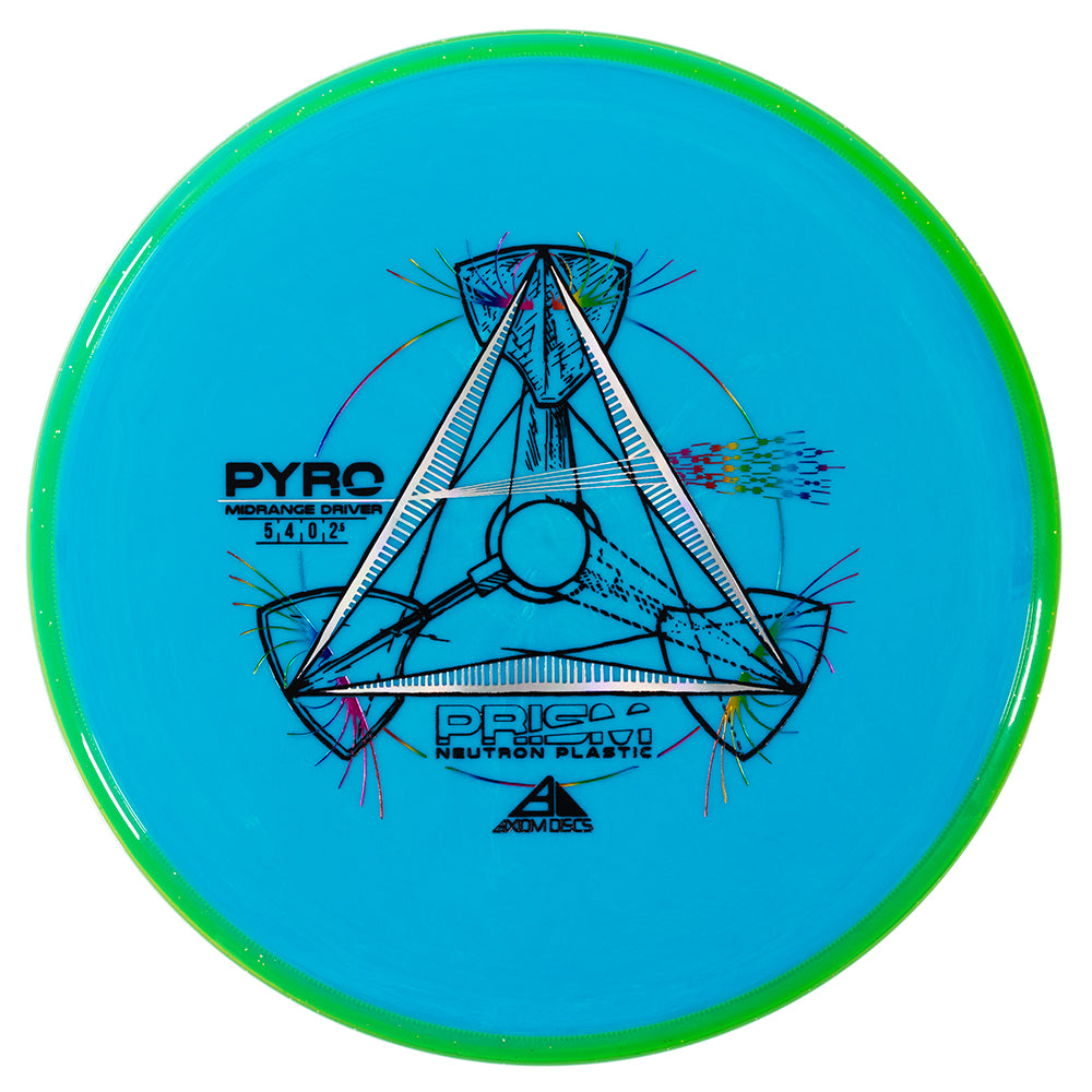The Prism Pyro is debuting with a stock triple-foil stamp, that in combination with a Proton core and Prism rim produces a stunning dual-toned translucent disc. The Prism Proton Pyro was designed as Axiom’s first overstable Midrange with more glide than the MVP Deflector and a commanding stable finish. The Pyro has enough stability for consistent flights in strong winds and powerful throws without losing its line and turning off target.
